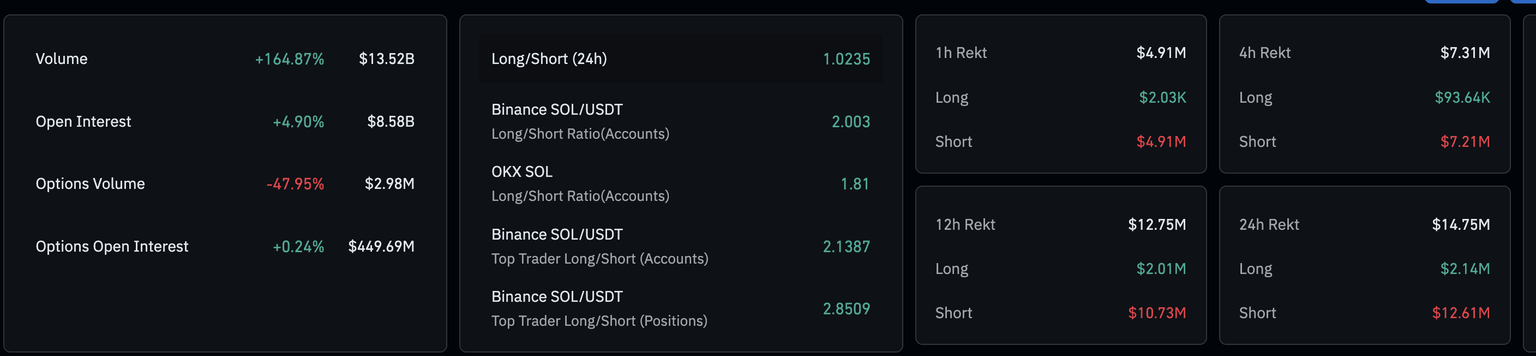 Trading data from CoinGlass shows SOL futures open interest increased 4.90% in the past 24 hours. The metric now stands at $8.58 billion. Open interest measures the total value of active futures contracts and often indicates trader sentiment.