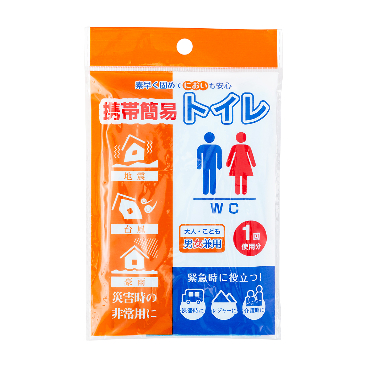丸辰の「携帯簡易トイレ」は、しっかりにおいを防ぎたい人におすすめ。防臭力の検証では疑似尿を入れた5分後も30分後も強いにおいを感じませんでした。登山や断水時など、すぐに捨てられない状況でもにおい漏れが気になりにくいでしょう。凝固剤があらかじめ入っていることで、排尿前に凝固剤を破く手間がかかりません。さらに、廃棄用の白い袋も付属しています。排尿後は10秒ほどで固まったため、スムーズに処理できるでしょう。一方で、受け口は10.5cmと小さめ。スポンジ状の受け口で性別を問わずフィットしやすいつくりではありますが、もう少し大きければ女性も使いやすい印象です。総じて、防臭力と処理のしやすさが魅力の携帯トイレといえます。男性や、におい漏れの少なさを優先したい女性は検討してみてください。