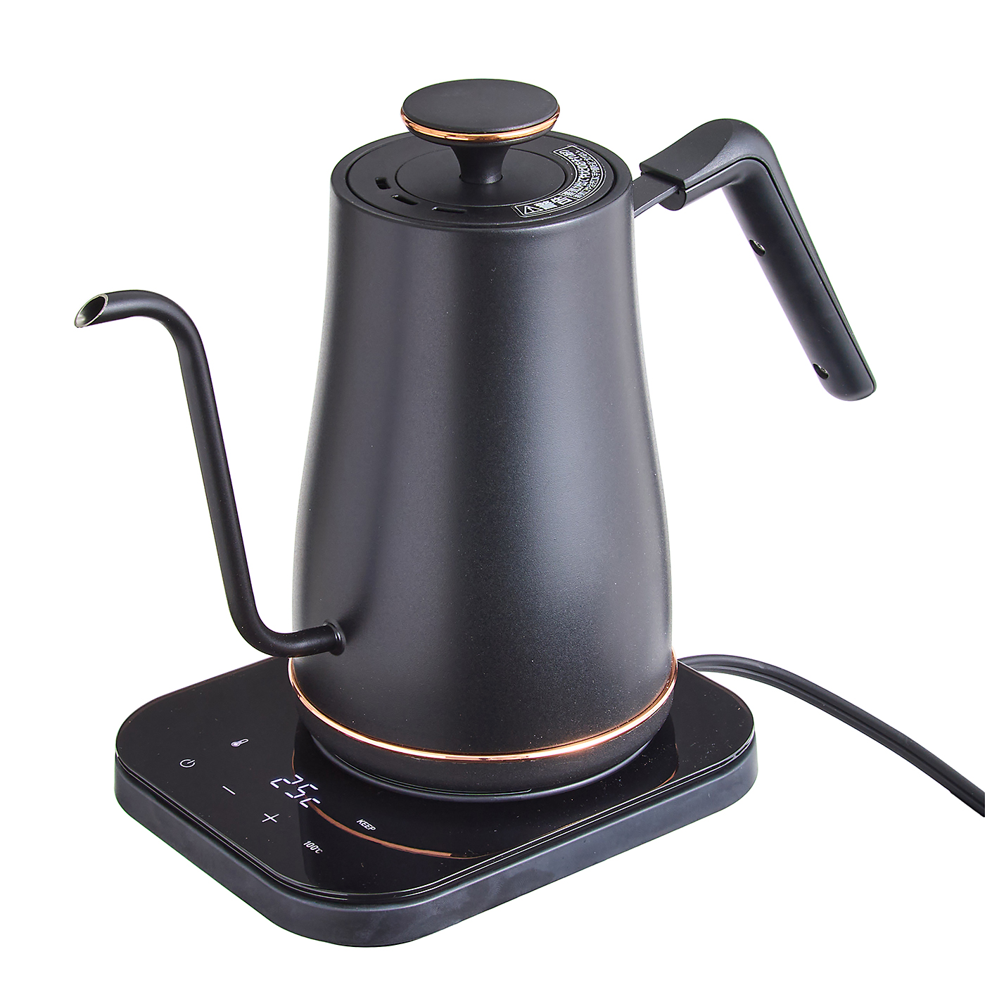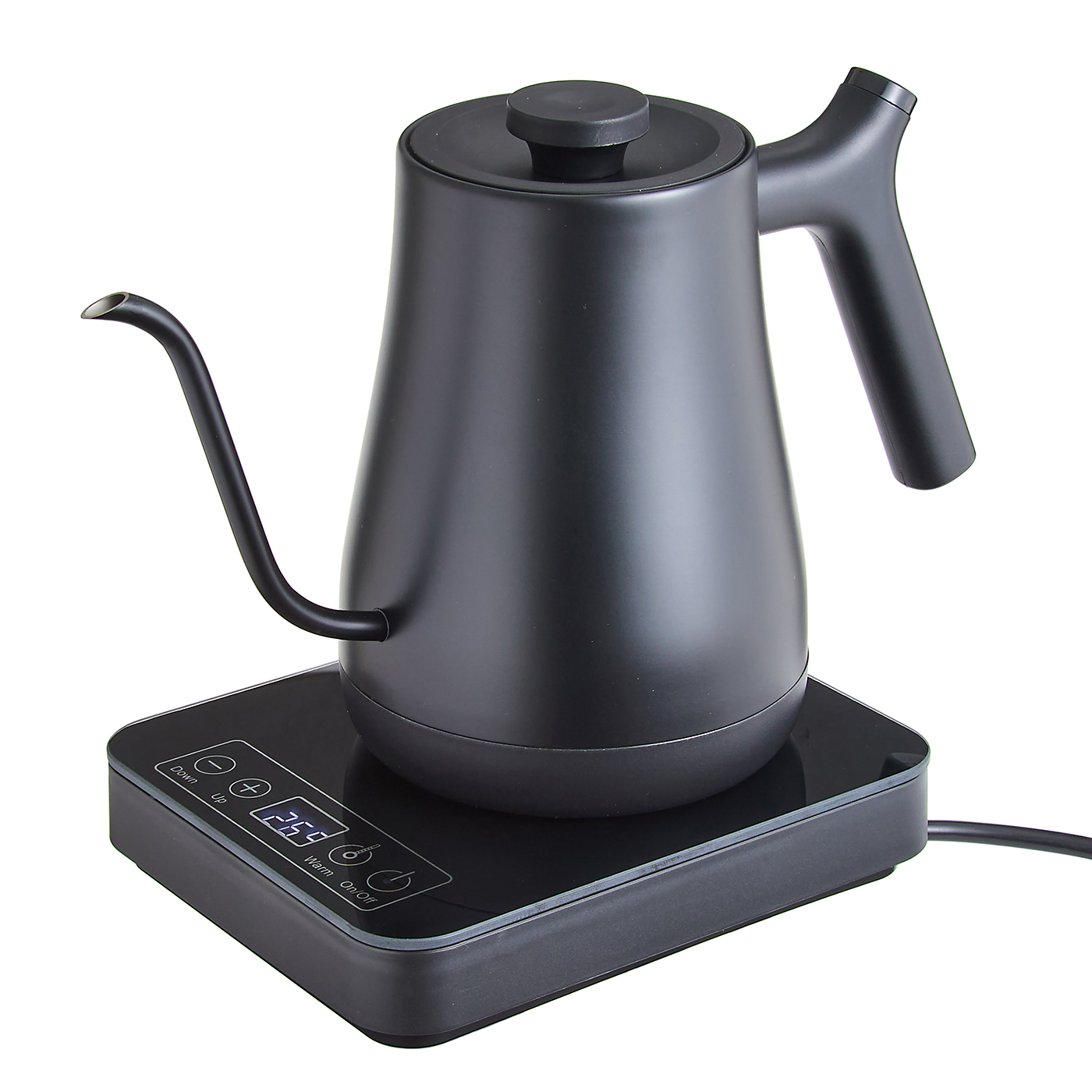 Epeiosは、シンプルで高機能なデザイン家電を中心に展開している家電メーカー。なかでも「ドリップケトル EPCP001」は、温度調節機能を備えつつも比較的手に取りやすい価格帯の商品として販売されています。注ぎ口は下向きの細口が採用されており、繊細な湯量のコントロールができ、ドリップ中の安定感にも優れている印象です。さらに、沸騰までに2分44秒しかかからないため、時間がない朝でも素早くコーヒーを淹れられますよ。また、1℃単位での湯温調節に対応しており、設定温度と実際の到達温度との誤差も3°C以内と比較的誤差が少ないため、湯温の繊細な調節にこだわりたい人にもおすすめです。また、空焚き防止や自動電源オフ機能が備わっており、沸騰時も持ち手が熱くならないなど、安全性にも十分に配慮されています。電気ケトルのため、付属品を含めた丸洗いには非対応ですが、スタイリッシュな見た目に惹かれる人や、湯温にまでこだわったハンドドリップに挑戦したい人にはおすすめですよ。