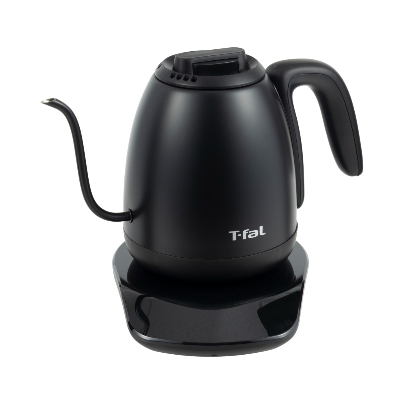 グループセブジャパンの「T-fal カフェ ロック コントロール KO9208JP」は、8段階の温度設定と60分の保温機能がついた電気ケトルです。狙ったところにドリップしやすい注ぎ口と、人間工学に基づいて設計されたハンドルの形状が特徴と謳っています。温度調節機能が優れており、設定温度と実際の到達温度との誤差はわずか1.5℃なうえ、使用する豆に適した温度でコーヒーを淹れられる点が魅力。また、お湯が沸騰するまでの時間は1分59秒と非常にスピーディで、忙しい朝でもサッと使えるのも嬉しいポイントです。注ぎやすさも良好です。細口ノズルでお湯が出る量を一定に保ちやすく、持ち手の厚さも2.7cmと安定感があります。ただし、注ぎ口が水平になっているため、注ぎ口が下を向いたポットに比べて狙った場所にお湯を落としづらい点とポット本体の重量が740gとやや重い点は気になりました。安全性への配慮は申し分ありません。沸騰時にも持ち手が熱くならず、空焚き防止機能や自動電源オフ機能を搭載しています。持ち運びには不向きなサイズですが、主に家庭内での使用を考えている人には有力候補になるでしょう。フタを完全に取り外せるので、日々の手入れも簡単ですよ。
