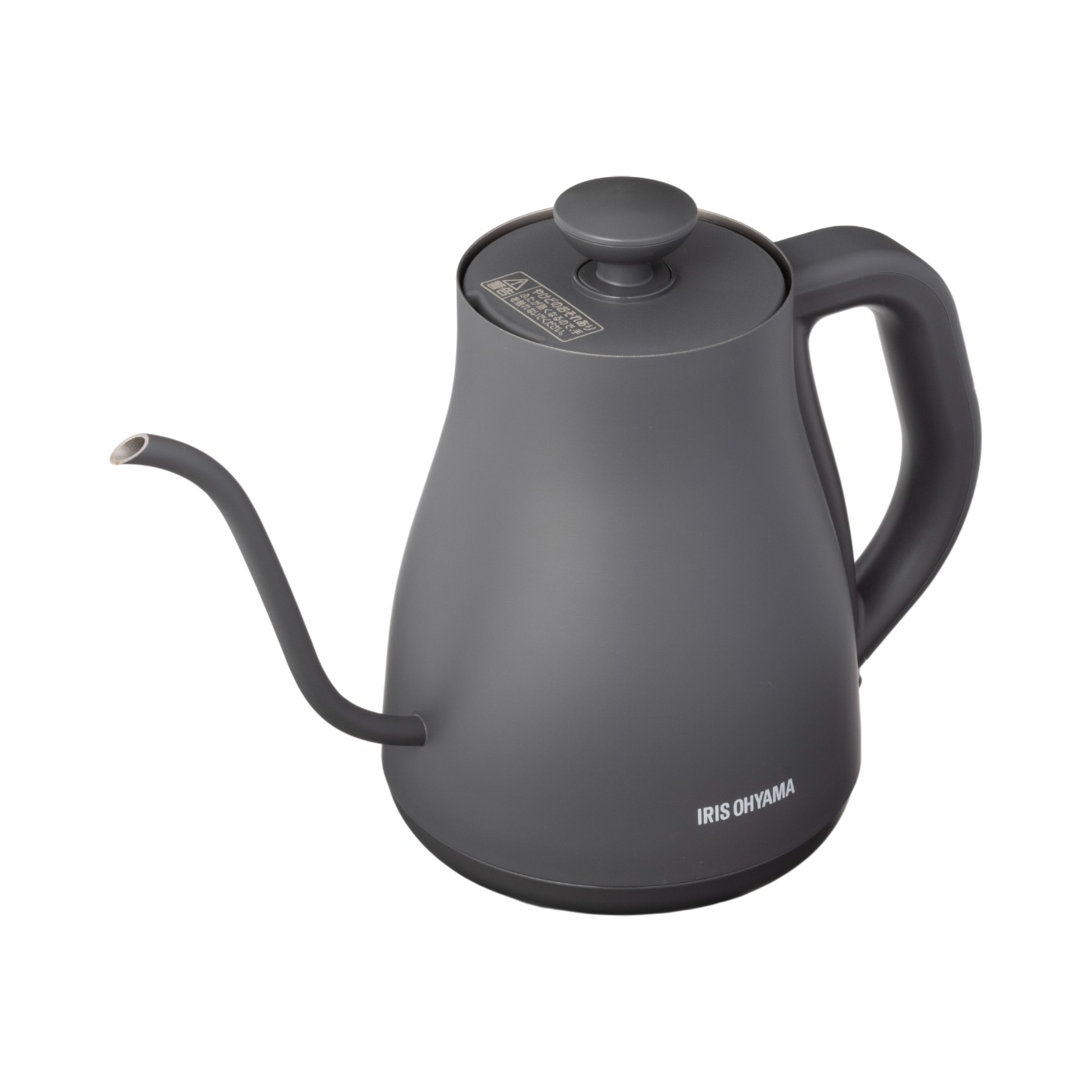 アイリスオーヤマの電気ケトル「アイリスプラザ ケトル IKE-C800T-H」は、ティーポットのようなアンティーク調のデザインが特徴の電気ケトル。容量は800mLです。本商品の魅力は、ハンドドリップにぴったりな注ぎやすさです。注ぎ口は下向きで細口形状。太さは6.64cm²と適度で、持ち手の厚さも1.97cmと握りやすい設計です。40〜100℃まで1℃刻みの温度調節機能や保温機能も搭載。2分9秒で沸騰したため、せっかちな人も満足できる商品といえます。また、転倒湯漏れ防止構造・空だき防止機能など、安全性に配慮した機能も充実。沸騰時に持ち手が熱くならないのもうれしいポイントです。丸洗いはできないものの、フタを完全に取り外して洗えます。内部までしっかり乾燥できるので、衛生面が気になる人にもおすすめです。アウトドアに携帯するにはサイズが大きすぎますが、据え置きでの使用ならぜひ購入を検討してくださいね。