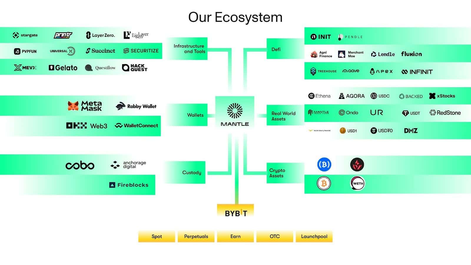 Ключевым драйвером расширения Mantle в 2025 году стала глубокая интеграция в экосистему Bybit, через внедрение токена MNT на спотовые рынки, институциональные торговые сервисы, VIP-программы ликвидности и другие сервисы..