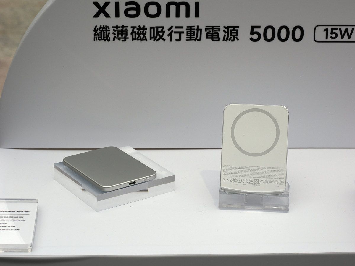 Xiaomi纖薄磁吸行動電源5000 15W則是第一款通過3C認證的高度安全性行動電源,能夠放心攜帶搭機旅行,搭載矽碳負極電池技術,在僅有6mm厚的設計具備5,000mAh電量,並可提供15W無線充電與22.5W有線充電。